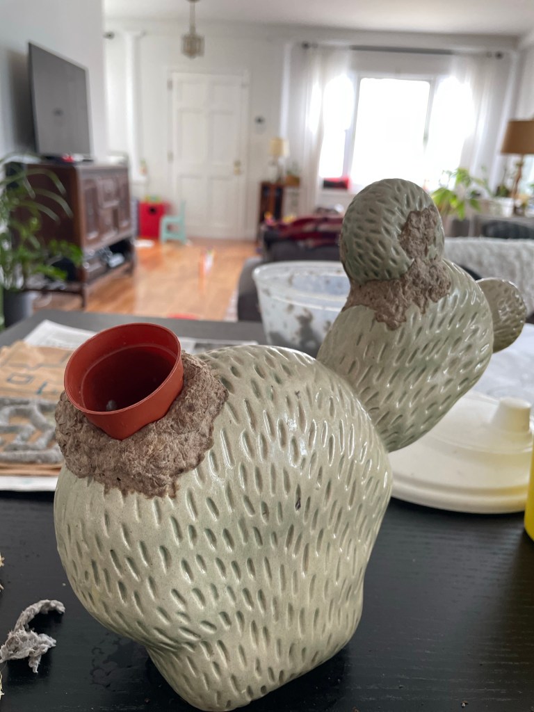 I fixed it with paper mache and painted it to similar colors. I also add a little pot in it for a real cactus 🌵 💕