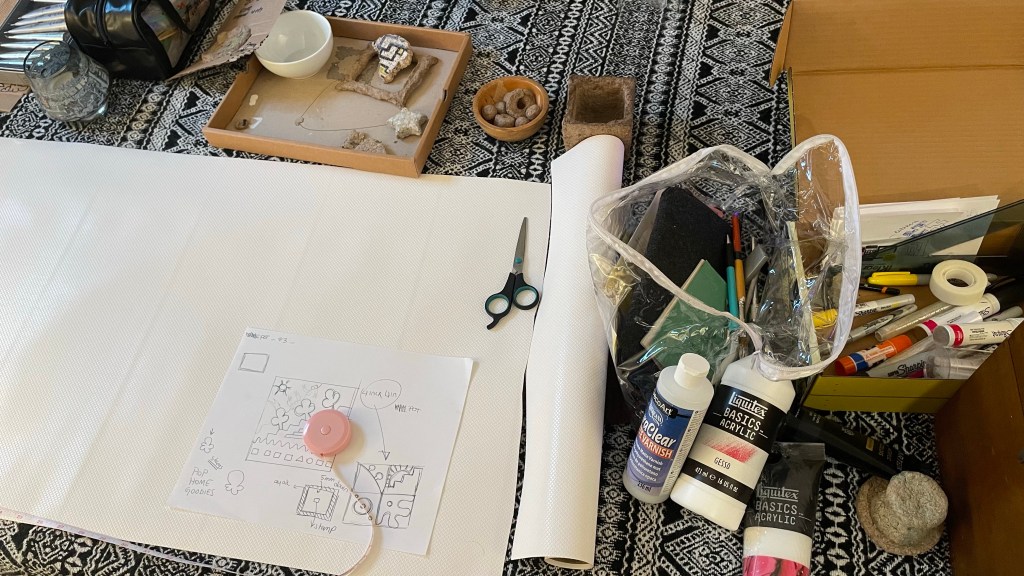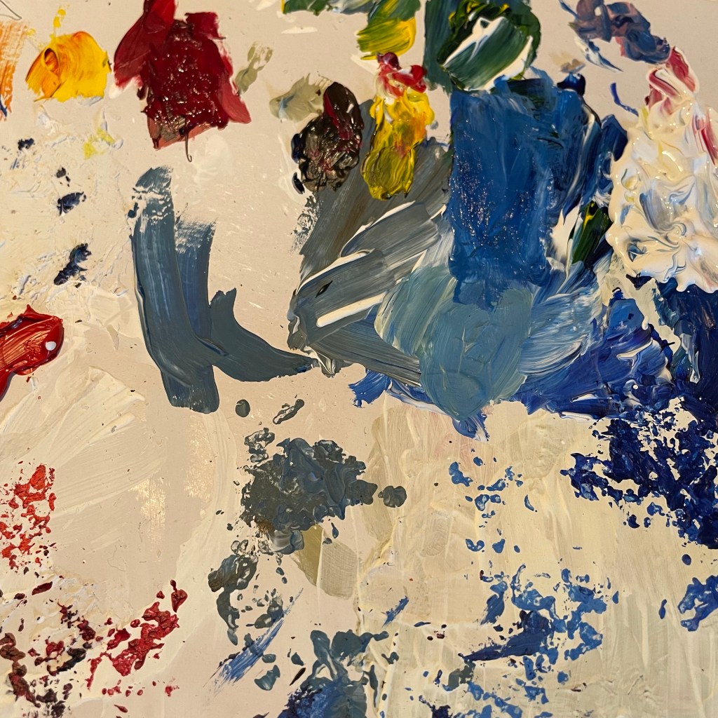 But which colors sound I use? Do I feel any blue? do I feel happy? Energetic? Mystic? Funny or elegant? Not elegant that’s what I’m sure. I feel colorful but also deep and dark… I feel funny and serious 🧐. What can I add to this test piece to make it more interesting, more me? What makes it different from the others, or let’s say from many others out there and makes it look special?