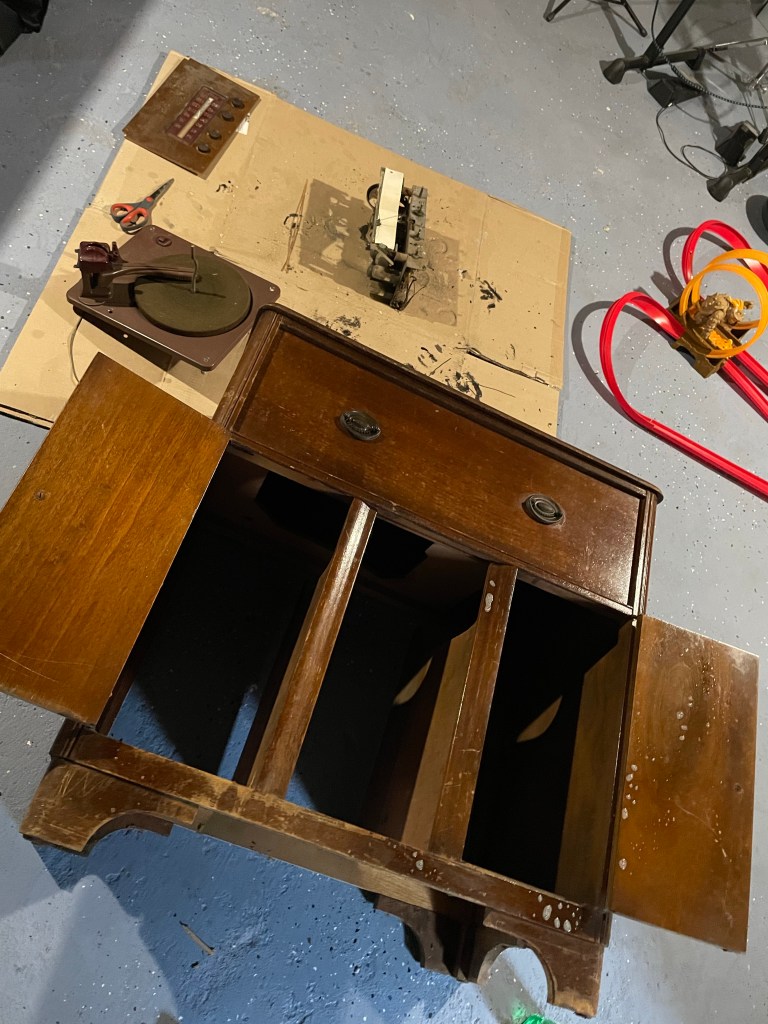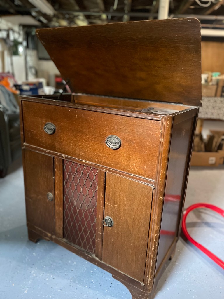 I have this broken record player cabinet π¦ sitting in my basement for a while.