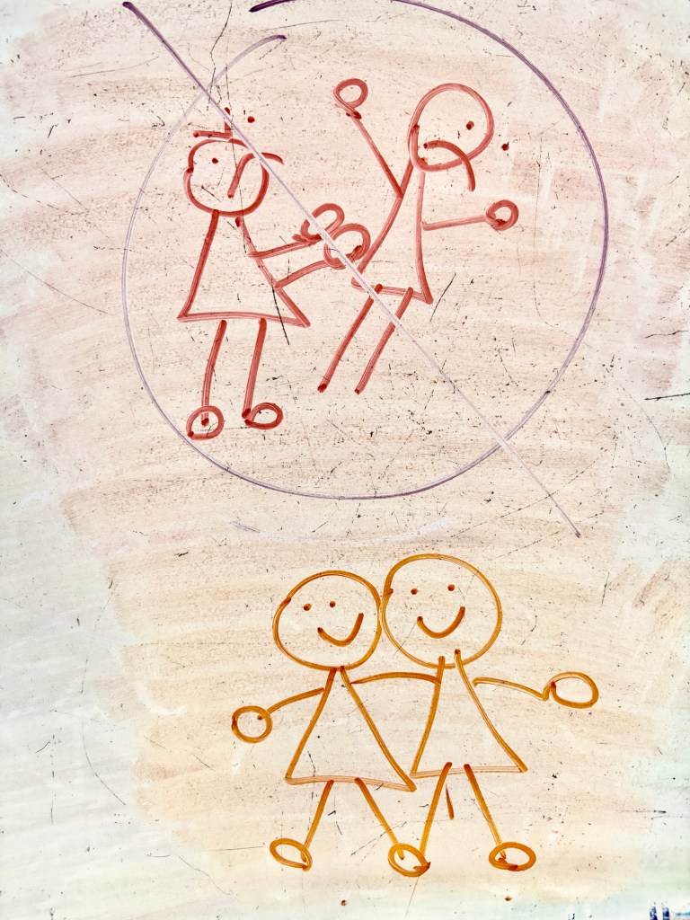 This week, I created a simple signing illustration to help toddlers understand the difference between hurting and caring.