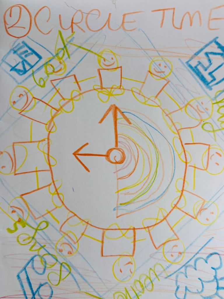 We begin our day by welcoming each child with a cheerful Good Morning. During Circle Time, we greet friends, talk about the day, sing songs, and build early listening and social skills. Afterward, we practice cleaning up together, learning responsibility and teamwork.